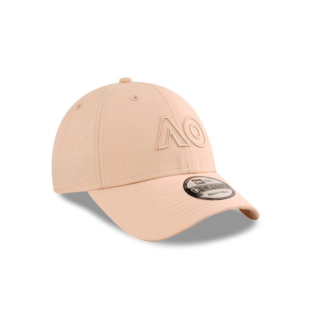 Elevate your game day style with this 9FORTY performance beige cap. The lightweight, water-repellent nylon fabric keeps you cool, dry, and comfortable, no matter the weather. The bold AO logo is embroidered in the same tone as the cap and adds a touch of style and tennis flair. The adjustable strap and the low-profile relaxed crown ensure a perfect fit for everyone.