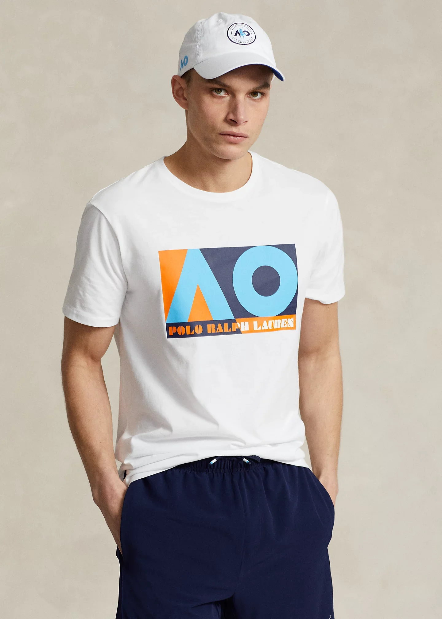 Part of the commemorative Ralph Lauren and Australian Open capsule collection for 2024, this cotton jersey T-shirt features the tournament's official logo and "Polo Ralph Lauren" printed on the front.